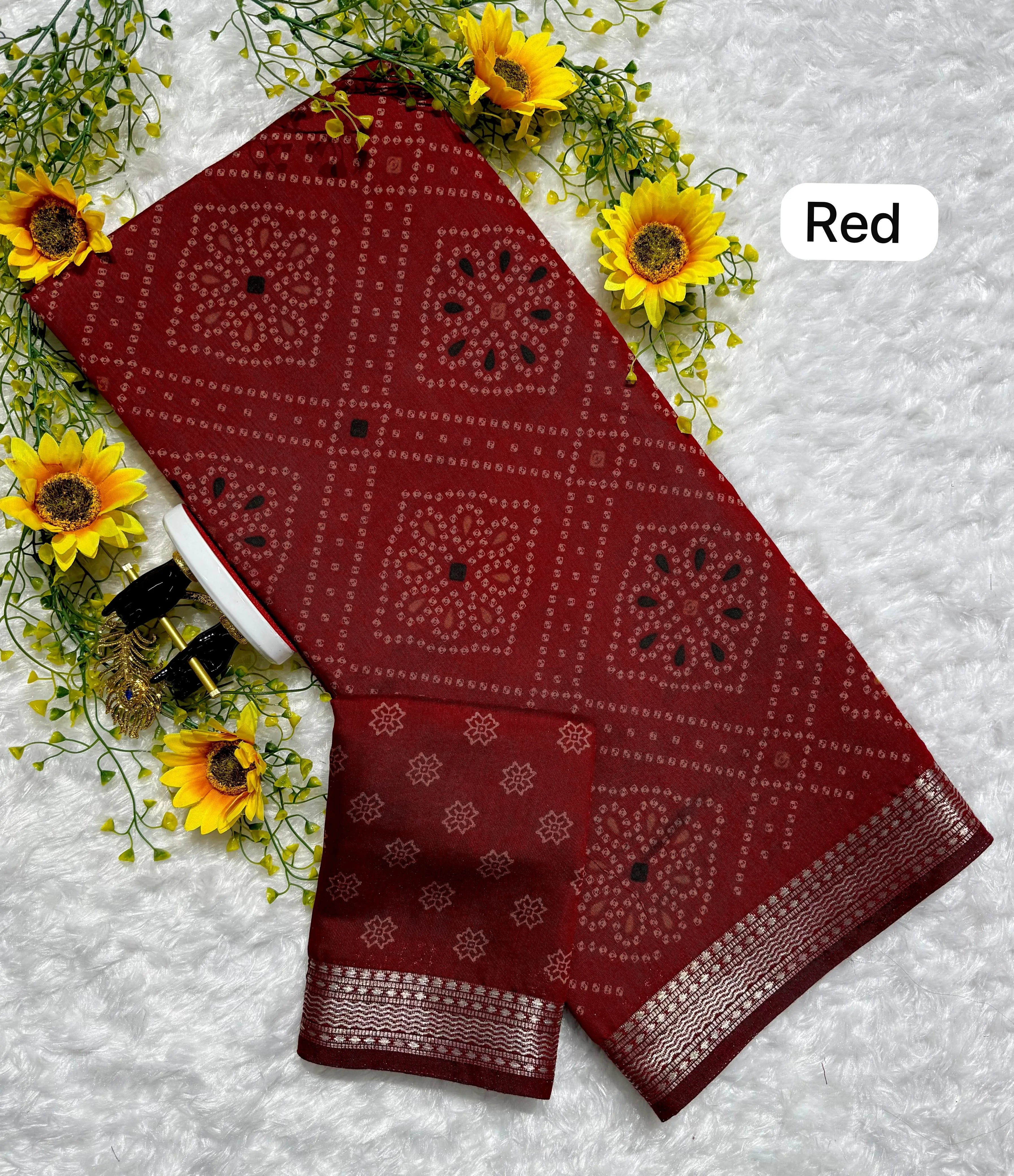 Premium Chiffon Saree with Zari Embroidery Butterfly Design & Banarasi Silk Blouse